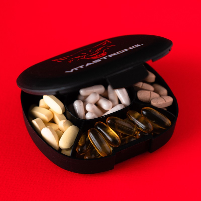 The VitaStrong pillbox is the ideal solution for all athletes who take various types of supplements in the form of pills, vitamins, minerals, etc.