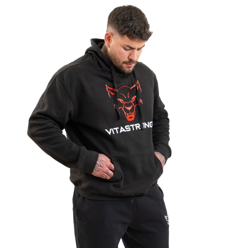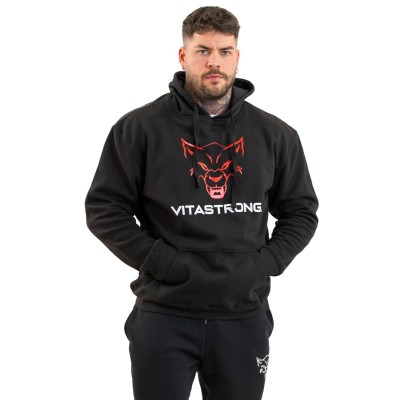 The Flagship Hoodie Black is the piece that gave birth to the Vitastrong style. A bold design, contrasting front logo, and the red Wolf dominating the scene: a symbol of power, belonging, and identity.