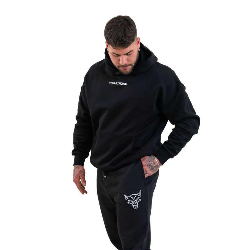 The Origin Hoodie Black embodies the essence of Vitastrong style: clean, powerful, uncompromising. A unisex sweatshirt with an oversized fit , made from premium fleece fabric for maximum comfort.