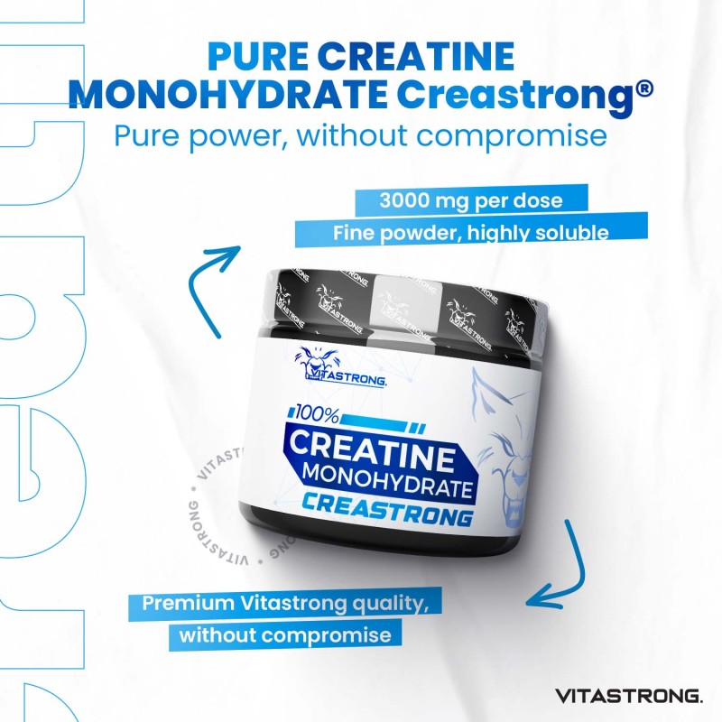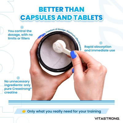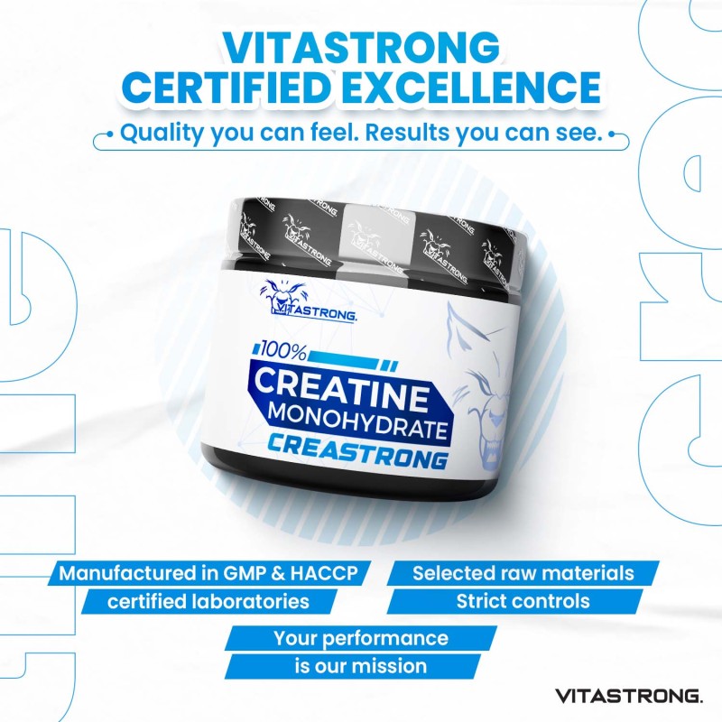 Unlike traditional creatines, Creastrong® offers excellent solubility and superior bioavailability, ensuring that every gram is optimized for muscle use. It is ideal for enhancing strength, endurance and recovery, while maintaining the quality and safety that athletes demand.