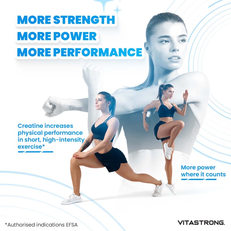 Creatine is a substance naturally present in the muscles, essential for the production of energy during high intensity and short duration efforts. Supplementing creatine with Creastrong® helps to increase muscle stores of phosphocreatine, improving the ability to generate energy quickly.