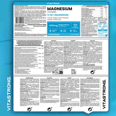 Vitastrong Magnesium Complex is an advanced dietary supplement that combines 5 different forms of magnesium to provide maximum absorption and multi-faceted benefits. This essential mineral is essential for reducing fatigue, improving muscle function, and supporting the nervous system and bone health.