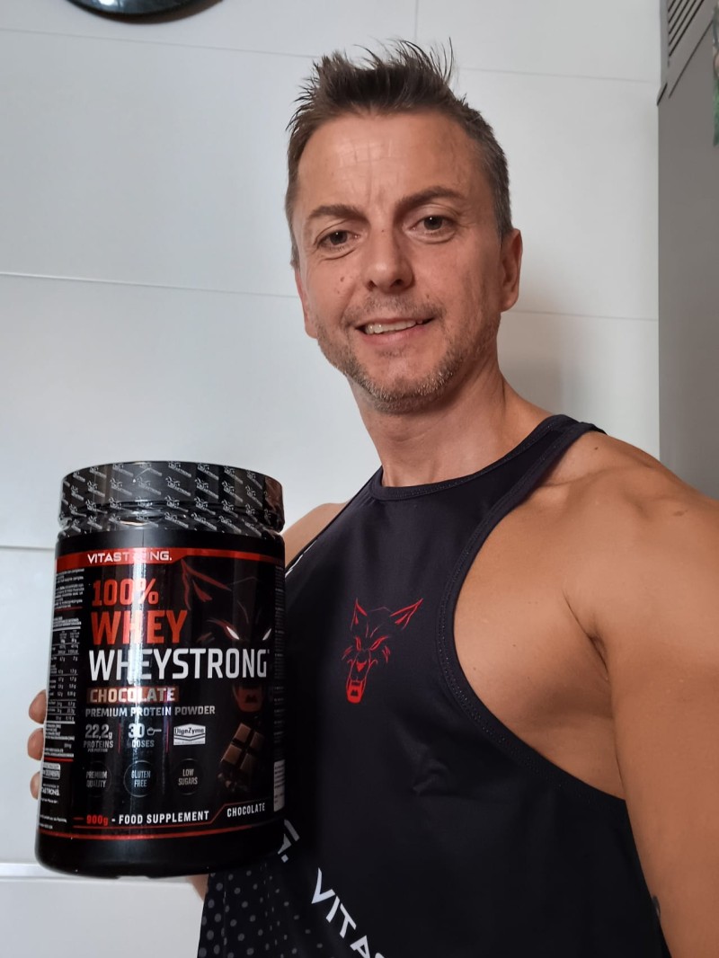 Wheystrong is a protein supplement based on concentrated whey proteins from Italian suppliers, with high bioavailability, enriched with DigeZyme® , an enzyme complex that improves digestion and nutrient assimilation.
