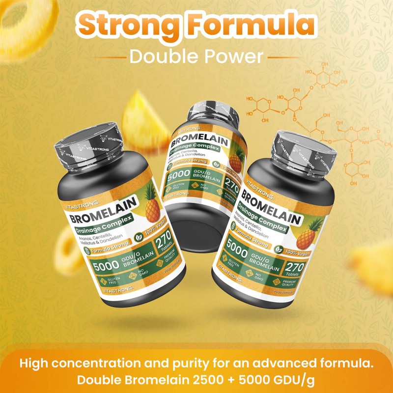 Bromelain Drainage Complex is an advanced supplement formulated with bromelain with high enzymatic activity (5000 GDU/g) and a mix of natural extracts of Pineapple, Centella, Melilot and Dandelion.
