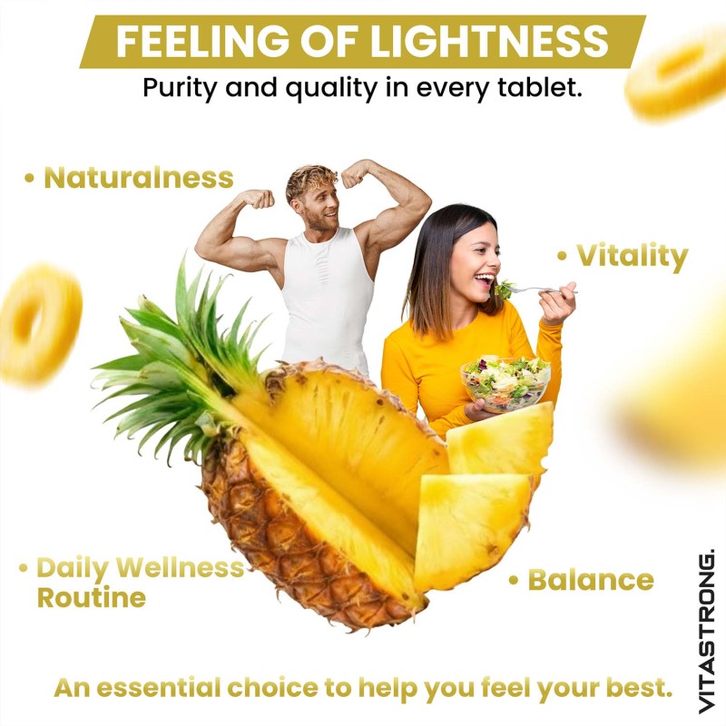 Bromelain, a natural enzyme found in pineapple, is known for its ability to reduce water retention and rebalance tissues 1 . Gotu Kola and Sweet Clover 2 work synergistically to support normal venous and lymphatic flow, while Dandelion contributes to the body's purification processes.