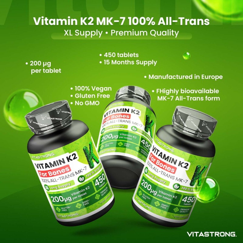 Vitamin K2 – For Bones is a supplement formulated with Vitamin K2 in the most structurally active and bioavailable form: All-Trans MK-7 .