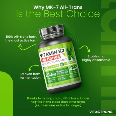 This product stands out for the use of the All-Trans form , the purest and most active form of vitamin K2.